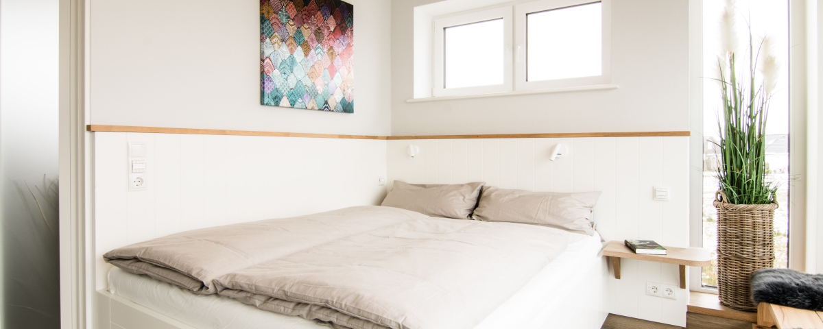 Das Ferienhaus Eiderbuhne 4 hat eine Wohnfläche von 70 m² für 4 Personen. Im Erdgeschoss befindet sich ein großzügiger Wohn- und Essbereich mit einer Küche. In den kalten Wintertagen sorgt der Gas Kamin für eine wohlige Atmosphäre im Wohnzimmer. Die großzügige Holzterrasse lädt im Sommer zum langen Verweilen und Entspannen ein.